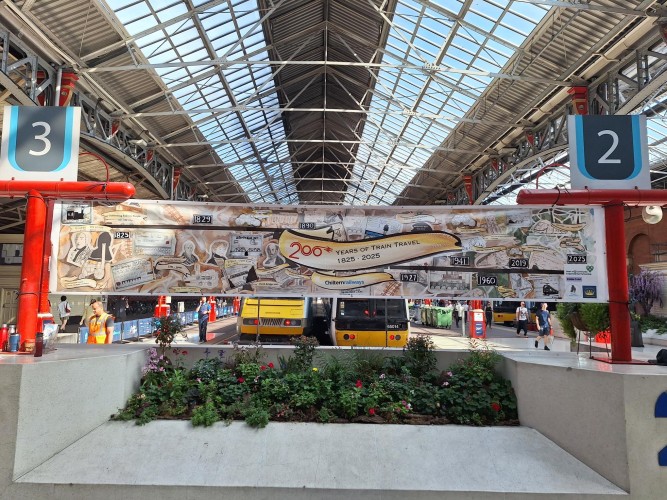 Take a look at some of the decorations appearing across our stations, including some collaborative work on a Railway 200 history timeline by a Warwickshire school that has been installed at London Marylebone.